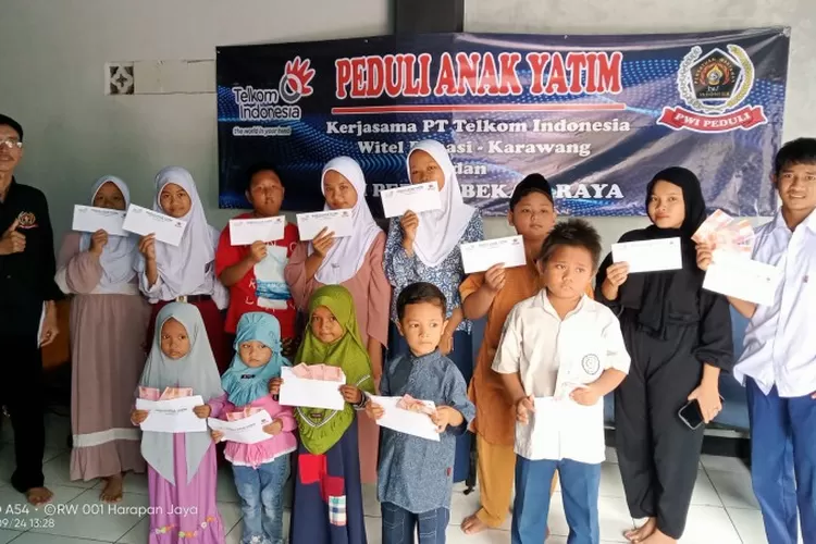 Santunan yang diberikan oleh PWI Peduli Bekasi Raya merupakan donasi dari PT Telkom Indonesia Witel Bekasi - Karawang untuk 50 anak yatim yang menjadi anak asuh PWI Bekasi Raya.