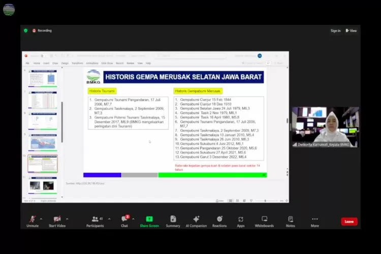 SATUARAH.CO - Kepala Badan Meteorologi, Klimatologi dan Geofisika (BMKG) Dwikorita Karnawati meminta masyarakat Sukabumi, Tasikmalaya, Bandung, Garut dan sekitarnya untuk mewaspadai adanya sejumlah potensi bencana usai guncangan gempa bumi tektonik berkekuatan Magnitudo 6.2, Sabtu (27/4/24) lalu.