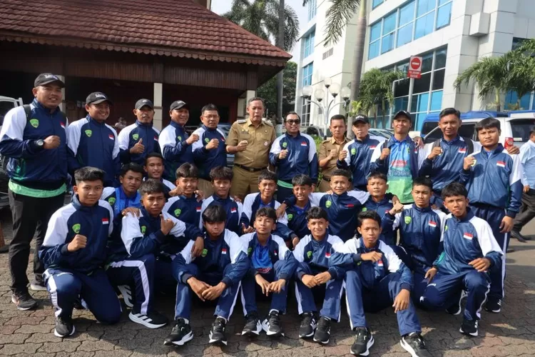 SATUARAH.CO - Wali Kota Bekasi, Tri Adhianto lepas siswa Sekolah Sepak Bola (SSB) se-Kota Bekasi yang tergabung dalam Tim Tajimalela yang akan mewakili Kota Bekasi pada ajang Turnamen Internasional Singa Cup U-14 di Singapura.