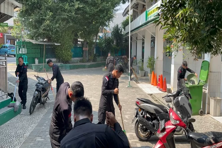 Para personel kemudian melaksanakan kegiatan kurve atau kerja bakti di lingkungan masjid dengan penuh semangat dan keikhlasan.